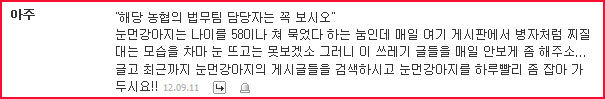 "ÇØ´ç ³óÇùÀÇ ¹ý¹«ÆÀ ´ã´çÀÚ´Â ²À º¸½Ã¿À" -¾Æ°í¶ó-