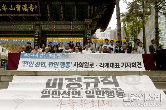 400¿©°³ »çȸ´Üü¿Í °¢°è ´ëÇ¥ µî 1¸¸¿© ¸íÀÌ 23ÀÏ ¡®ºñÁ¤±ÔÁ÷ ¾ø´Â ¼¼»ó ¸¸µé±â ¸¸Àμ±¾ð¡¤¸¸ÀÎÇൿ¡¯ ±âÀÚȸ°ßÀ» ¿­°í ºñÁ¤±ÔÁ÷ Â÷º° öÆó¸¦ Ã˱¸Çß´Ù.