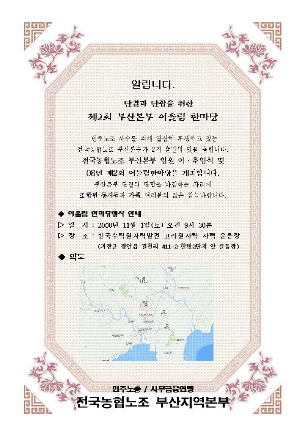 Àü±¹³óÇù³ëÁ¶ ºÎ»êº»ºÎ Á¦2ȸ ¾î¿ï¸²ÇѸ¶´ç °³ÃÖ