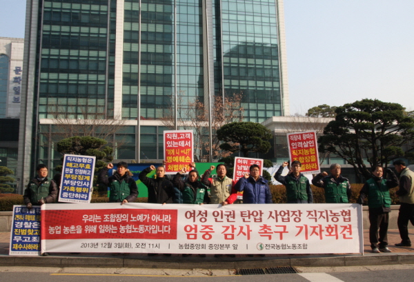 ÀÌ ¸ðµç ÇàÀ§ÀÇ Á߽ɿ¡´Â Á÷Áö³óÇù Á¶ÇÕÀåÀÌ ÀÖ´Ù. Á¶ÇÕÀåÀº Áö³ 2010³â ÀÚ½ÅÀÇ Á¶ÇÕÀå ¼±°Å¸¦ µµ¿ÍÁÖÁö ¾ÊÀº Á÷¿øµéÀ» Ÿ ³óÇùÀ¸·Î °Á¦ ÀüÀû½Ã۰í Ư¼öÁ÷À¸·Î ÀüÀûÀÌ ¿©ÀÇÄ¡¾ÊÀº ÇÇÇØÀÚ¸¦ ÂѾƳ»°íÀÚ Ç÷¾ÈÀ̵Ǿî ź¾ÐÀ» ÀÏ»ï¾Ò´Ù.
