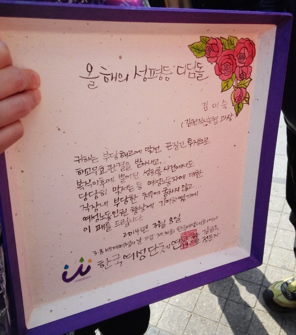 À̳¯ Àü±¹³óÇù³ëÁ¶´Â Çѱ¹¿©¼º´ëȸ¿¡ Âü¼®ÇØ ±è¹Ì¼÷µ¿ÁöÀÇ ¼ö»ó ±â