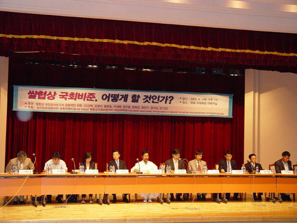 2005³â 9¿ù 1ÀÏ ¿ÀÈÄ 1½Ã 20ºÐºÎÅÍ ±¹È¸ ÀÇ¿øÈ¸°ü ´ëȸÀǽǿ¡¼ '½ÒÇù»ó ±¹È¸ºñÁØ ¾î¶»°Ô ÇÒ °ÍÀΰ¡'¶ó´Â ÁÖÁ¦·Î Åä·Ðȸ°¡ ¿·È´Ù. °±â°© ÀÇ¿øÀ» ºñ·ÔÇÑ ½Ò Çù»ó ±¹Á¤Á¶»ç¿ä±¸¼ °øµ¿Á¦¾È ÀÇ¿øÀÌ ÁÖ°üÇÑ ÀÌ Çà»ç¿¡´Â Àü³ó°ú Àü¿©³ó, Àü±¹³ó¾÷±â¼úÀÚÇùȸ, Çѱ¹³ó¾÷°æ¿µÀÎÁß¾Ó¿¬ÇÕȸ, Çѱ¹Ä«Å縯³ó¹Îȸ µî ¿©·¯ ´ÜüÀÇ »ç¶÷µé°ú °¢ Áö¿ª³ó¹ÎÀÌ ÇÔ²² Çß´Ù.