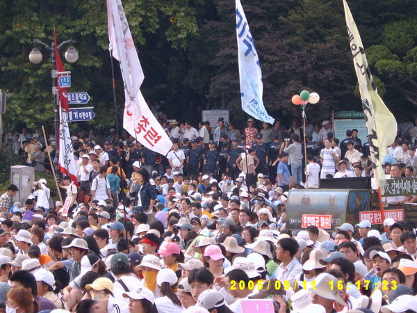 Áýȸ Âü°¡ÀÚµéÀº Áö³ 7¿ù ÅõÀï°ú À̳¯ ÅõÀï¿¡ À̾î 11¿ù APEC¿¡¼ÀÇ 10¸¸ÀÌ °áÁýÇÏ´Â ¹Ý¹ÌÅõÀïÀ¸·Î ³ª¾Æ°¥ °áÀǸ¦ ¸ðÀ¸¸ç Áýȸ¸¦ ¸¶¹«¸®Çß´Ù. ¾ÕÀ¸·Î ÅõÀïÀº 11¿ù ºÎ»ê APEC°ú 12¿ù WTO ÅõÀïÀ» ¹Ý¹ÌÅõÀïÀ¸·Î ¸¸µé¾î°¡´Âµ¥ ÁýÁßµÉ °ÍÀ¸·Î º¸ÀδÙ.