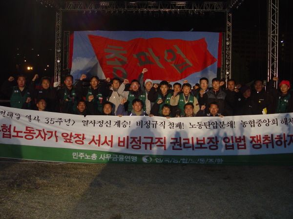 ¿»çÁ¤½Å °è½Â, ¹ÎÁÖ³ëÃÑ Ã¢¸³ 10Áֳ⠱â³ä, ºñÁ¤±Ô±Ç¸®º¸Àå ÀÔ¹ýÀïÃ븦 À§ÇÑ Àü±¹³ëµ¿ÀÚ´ëȸ 12ÀÏ Àü¾ßÁ¦¸¦ ½ÃÀÛÀ¸·Î 13ÀÏ º»´ëȸ±îÁö Àü±¹³óÇù³ëÁ¶µµ ÈûÂ÷°Ô °áÇÕÇÏ¿© ÅõÀïÇÏ¿´´Ù.