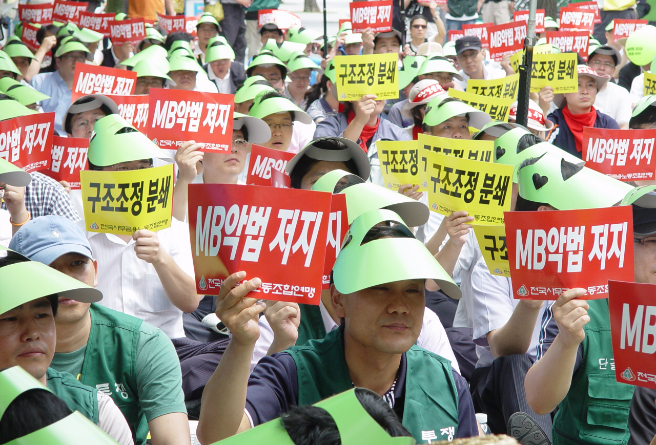 ±¹È¸ ¾Õ¿¡¼ À̸í¹Ú Á¤±Ç°ú Çѳª¶ó´çÀÇ ¹Ý¹ÎÁÖÀûÀÌ°í ¹Ý³ëµ¿ÀÚÀûÀÎ Æø°Å¿¡ ´ëÇÑ »ç¹«±ÝÀ¶³ëµ¿ÀÚµéÀÇ ÁؾöÇÑ °æ°í°¡ ¿ï·ÁÆÛÁ³´Ù.