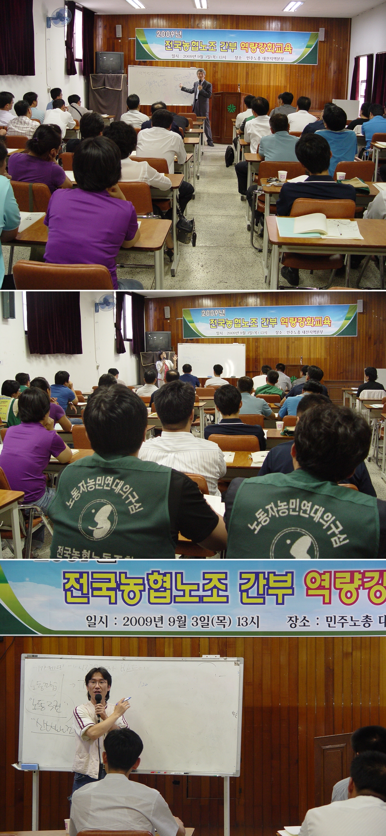 Àü±¹³óÇù³ëÁ¶´Â Áö³­ 9¿ù 3ÀÏ(¸ñ) ¹ÎÁÖ³ëÃÑ´ëÀüÁö¿ªº»ºÎ ±³À°Àå¿¡¼­ 70¿©¸íÀÇ Àü±¹ °£ºÎµ¿ÁöµéÀÌ ¸ð¿© °£ºÎ ¿ª·®°­È­±³À°À» ÁøÇàÇÏ¿´´Ù.