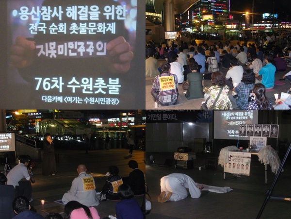 Àú³á½Ä»ç ÈÄ ¼ö¿ø¿ª ±¤ÀåÀ¸·Î Àå¼Ò¸¦ ¿Å±ä ¼øÈ¸ÅõÀï´ÜÀº Áö¿ª ½Ã¹Îµé°ú ÇÕ·ùÇØ¼ Àӽà ºÐÇâ¼Ò¸¦ ¼³Ä¡ÇÏ°í ¿ë»ê ±¹¹Î¹ýÁ¤ 1¸¸ ±â¼ÒÀÎ ¸ðÁý Ä·ÆäÀÎÀ» ¹ú¿´´Ù. °Å¸®¸¦ Áö³ª´Â ¼ö¿ø ½Ã¹ÎµéÀÌ Å« °ü½ÉÀ» °®°í ÁöÄѺ¸´Â °¡¿îµ¥ 7½ÃºÎÅÍ ¼øÈ¸ÅõÀï´Ü ÃâÁ¤½ÄÀÌ ÁøÇàµÆ´Ù. ÃâÁ¤½Ä¿¡´Â ¹ö½º¿¡ ¿À¸¥ 20¿©¸íÀÇ ¼øÈ¸ÅõÀï´Ü ¿Ü¿¡µµ ¼ö¿ø¿¡¼ Á÷Á¢ °áÇÕÇÑ Àüö¿¬ ¼ö¿ø±Ç¼±3Áö±¸Ã¶´ëÀ§, Àü±¹³ó¹ÎȸÃÑ¿¬¸Í, »çȸÁøº¸¿¬´ë µî ¹ü´ëÀ§ Âü°¡´Üü Áö¿ª ȸ¿øµéÀÌ ÇÔ²² Çß´Ù.
