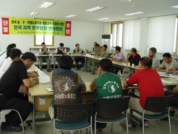 7¿ù 29ÀÏ ¿ÀÈÄ 2½Ã öµµ³ëÁ¶ ´ëÁ¤Áö¹æº»ºÎ ȸÀǽǿ¡¼ Àü±¹ ³ó․¼ö․ÃàÇù ³ëÁ¶ ÅëÇÕÁ¶Á÷ °Ç¼³ ÃßÁøÀ§(ÀÌÇÏ ÅëÃßÀ§)°¡ ÁÖ°ü ¹× ÁÖÃÖÇÏ´Â 3°³ Á¶Á÷ ¡®Áö¿ªº»ºÎÀå ´Ü ¿¬¼®È¸ÀÇ¡¯°¡ ¿·È´Ù. (ÃÑ Âü¼®´ë»ó 30ÀÎ Áß 16ÀÎ Âü¼®, Àü±¹³óÇù³ëÁ¶ Áß¾Ó ÀÓ¿ø µî ´Ù¼ö Âü°üÀÎ ¹è¼®)