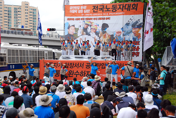´ëȸ´Â ¹ÎÁÖ³ëÃÑÀÌ 8.15¸¦ ¸Â¾Æ °ø¾Èź¾Ð¿¡ ¸Â¼ ±¹¹ÎÃкÒÀ» µÇ»ì¸®°í ³ëµ¿ÀÚµéÀÇ Á¶Á÷Àû ÅõÀïÀ» °áÀÇÇϱâ À§ÇØ ¿·È´Ù. ¿¬¸Í¿¡¼´Â À̳¯ ´ëȸ¿¡ ¾Ë¸®¾ÈÃ÷»ý¸íÁöºÎ¿Í ÄÚ½ºÄÞºñÁ¤±ÔÁöºÎ, Àü±¹³óÇù³ëÁ¶, Àü±¹»ç¹«¿¬´ë³ëÁ¶ µî ¿¬¸Í »êÇÏ °£ºÎ¿Í Á¶ÇÕ¿øµéÀÌ Âü¿©Çß´Ù.