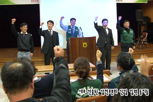 ºÐȸ ÀÓ¿ø ¼±°Å°á°ú ¹ßÇ¥¿¡ ¾Õ¼ ½Å±Ô Á¶ÇÕ¿ø¿¡°Ô ¿ì¸® ³ëÁ¶ Á¶³¢¸¦ ÀÔÇôÁִ ȯ¿µÇà»çµµ ¿·È´Ù.