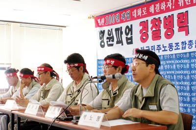 ¹ÎÁÖ³ëÃÑÀº 8¿ù29ÀÏ ¿ÀÀü »õ ÀÓ¿øÁø ¼±Ãâ µÚ Ã¹ ±âÀÚȸ°ßÀ» ¿¾î ÇѶ󺴿ø ³ëÁ¶Åº¾Ð°ú ÆÄ¾÷»ç¾÷Àå °æÂûÅõÀÔ ¹æÄ§À» °·ÂÈ÷ ±ÔźÇß´Ù. ¹ÎÁÖ³ëÃÑÀº "°æÂûº´·Â ÅõÀÔÀº º´¿øÆÄ¾÷ÀÇ ³¡ÀÌ ¾Æ´Ï¶ó ³ëÁ¤ Àü¸éÀüÀÇ µµÈ¼±ÀÏ »Ó"À̶ó¸é¼ "»ç¿ëÁÖµéÀº °æÂûº´·ÂÀ» ºÒ·¯µé¿© ³ëÁ¶¸¦ Á¦¾ÐÇÏ·Á´Â °³¹ßµ¶Àç ½Ã´ëÀÇ »ý°¢À» ¹ö¸®°í ³ë»çÀÚÀ²·Î »çŸ¦ ÇØ°áÇϱâ À§ÇØ Áï°¢ ±³¼·¿¡ ³ª¿Í¾ß ÇÑ´Ù"°í ÁÖÀåÇß´Ù.