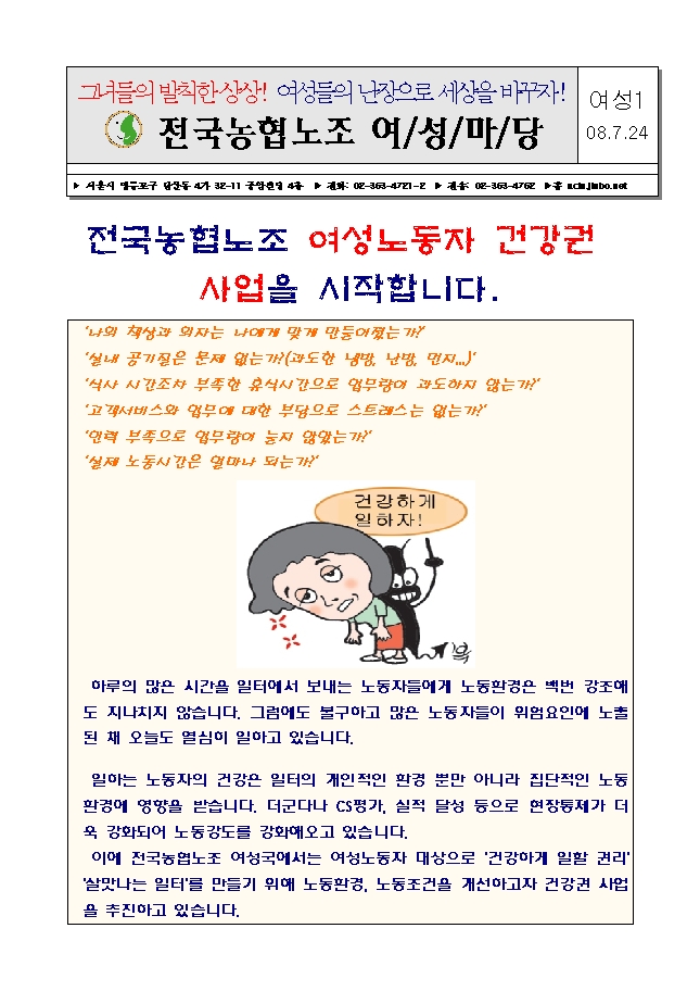 ¿©¼º³ëµ¿ÀÚ °Ç°±Ç »ç¾÷¿¡ ÇÔ²²ÇØ¿ä!-½ÇÅÂÁ¶»ç ÁøÇàÁß!
