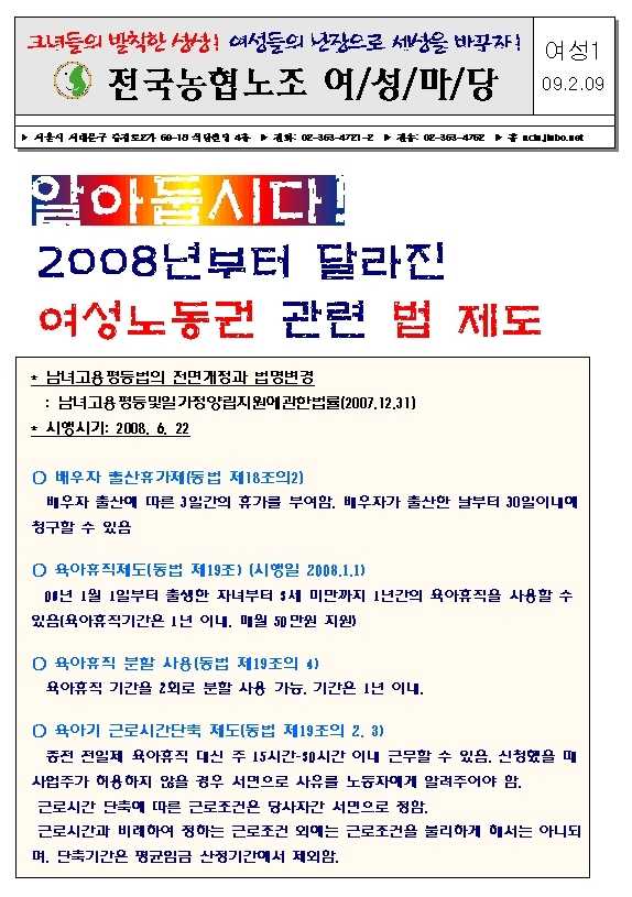 [09 ¿©¼º¸¶´ç] ¾Ë¾ÆµÓ½Ã´Ù! 2008³âºÎÅÍ ´Þ¶óÁø ¿©¼º³ëµ¿±Ç °ü·Ã ¹ýÁ¦µµ