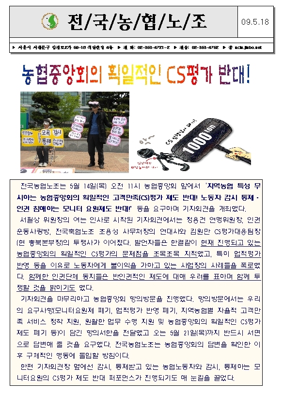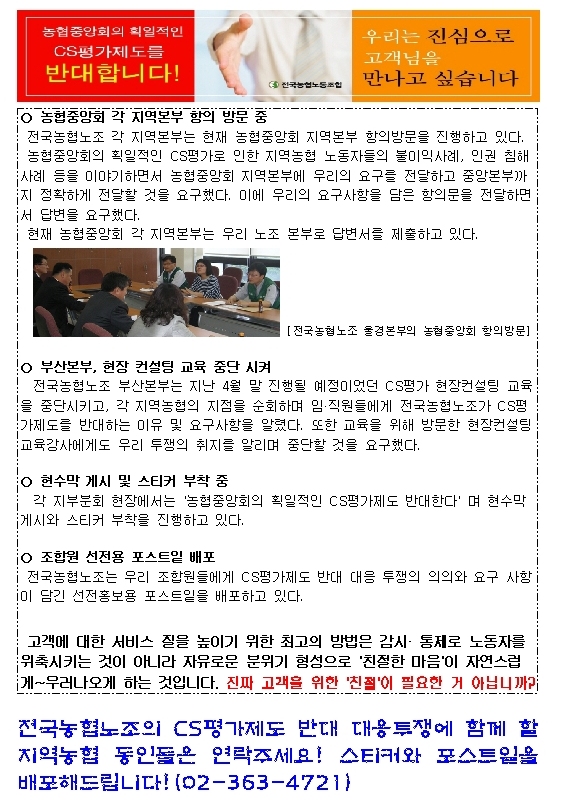 [09 ¿©¼º¸¶´ç] ³óÇùÁß¾ÓȸÀÇ È¹ÀÏÀûÀÎ CSÆò°¡Á¦µµ ¹Ý´ëÇÑ´Ù!