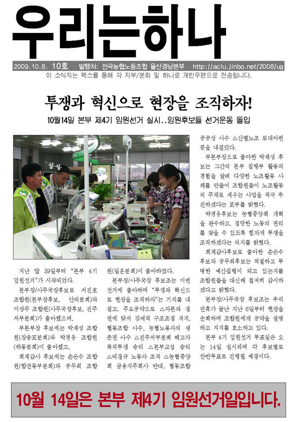 ¿ì¸®´ÂÇϳª 10È£_º»ºÎ 4±â ÀÓ¿ø¼±°Å ¼Ò½Ä