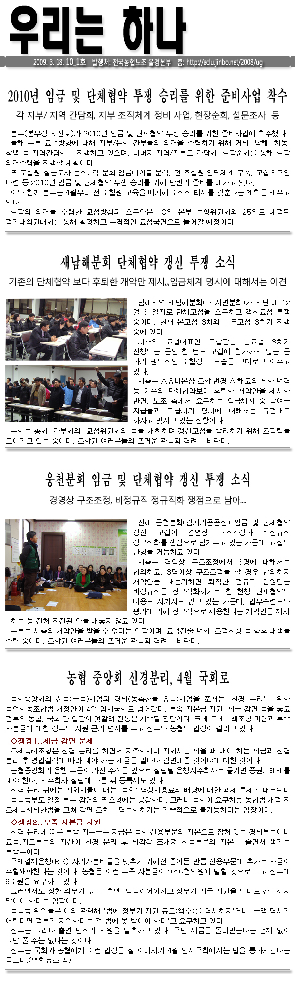[¿ì¸®´ÂÇϳª 10_1È£] 2010³â ÀÓ±Ý ¹× ´ÜüÇù¾à ÅõÀï ½Â¸®¸¦ À§ÇÑ Áغñ»ç¾÷ Âø¼ö µî