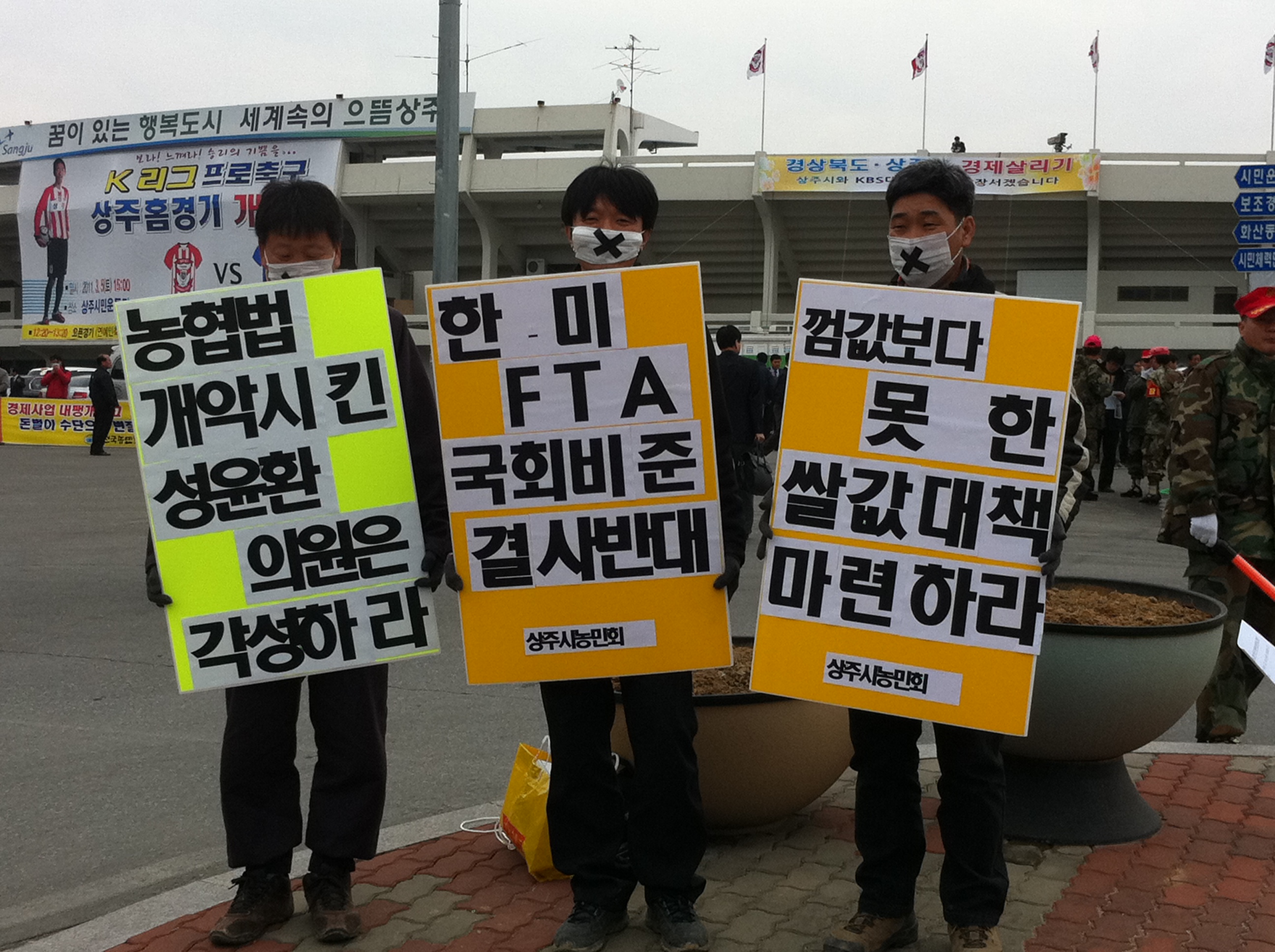 ³ó¾÷µµ½ÃÀÇ ½Ã¹ÎµéÀ» ´ë½ÅÇØ¼ ±¹È¸¿¡ °£ À̰¡, ³ó¹ÎµéÀ» À§ÇÑ ³óÇù¹ýÀÌ ¾Æ´Ñ ³óÇù ¹èºÎ¸£°Ô ÇÏ´Â ³óÇù¹ýÀ» ¸¸µé¾ú´Ù´Â ¼Ò½Ä¿¡ ¿ì¸® ³ó¹Îȸ¿øµéÀº ¼±ÀüÀüÀ» ¹úÀ̱â·Î Çß½À´Ï´Ù.