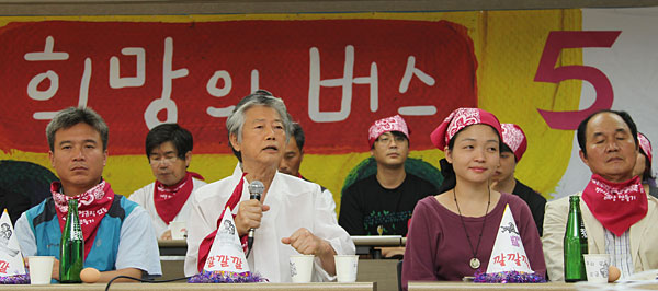 ¹é ¼ÒÀåÀº ¡°Èñ¸Á¹ö½º´Â °ÅÁþ¸»¸¸ ÀÏ»ï´Â ÆÄ·ÅÄ¡¹ü, »·»·Ä¡¿ÍÀÇ ½Î¿òÀ̸ç, ÇÑ »ç¾÷Àå ³ë»ç¹®Á¦¸¦ ¶°³ª ½â¾îºüÁø Àç¹ú°ú »ý»êÀû ¾ç½É¼¼·Â °£ ½Î¿òÀ̸ç, ÀÌ ³ª¶ó °¡Àå ³ôÀº ÀÚ¸®¿¡ ¾É¾Æ ¹é¼ºµéÀÇ ÇÇ´«¹°À» ¿Ü¸éÇÏ´Â, ´ëÅë·É ÀÚ¸®¿¡ ¾ÉÀ» ÀÚ°Ý ¾ø´Â À̸í¹Ú°úÀÇ ½Î¿òÀÓÀ» ¸í¹éÈ÷ ÇØ¾ß ÇÑ´Ù¡±¸é¼ ¡°ÀÌ »õ·Î¿î °íºñ¸¦ ±Øº¹ÇÏ°í ±èÁø¼÷À» »ì·Á³»·Á¸é ÀÌ ¶¥ ÀÌ Å« °¨¿ÁÀ» ±ú¶ß·Á¾ß ÇÑ´Ù¡±°í ¿ª¼³Çß´Ù.