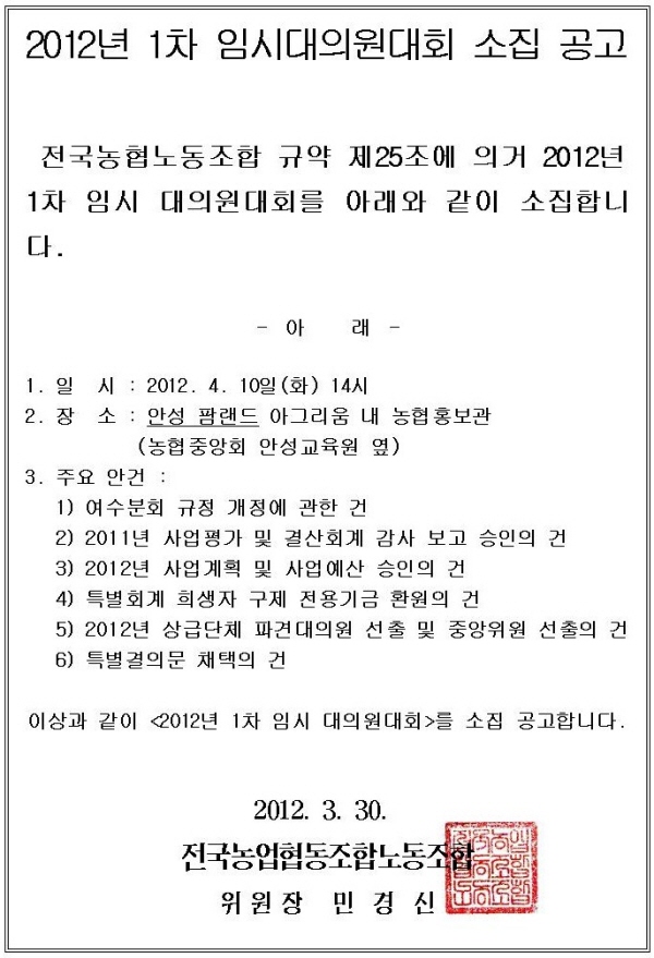 2012³â 1Â÷ ÀӽôëÀÇ¿ø´ëȸ ¼ÒÁý °ø°í