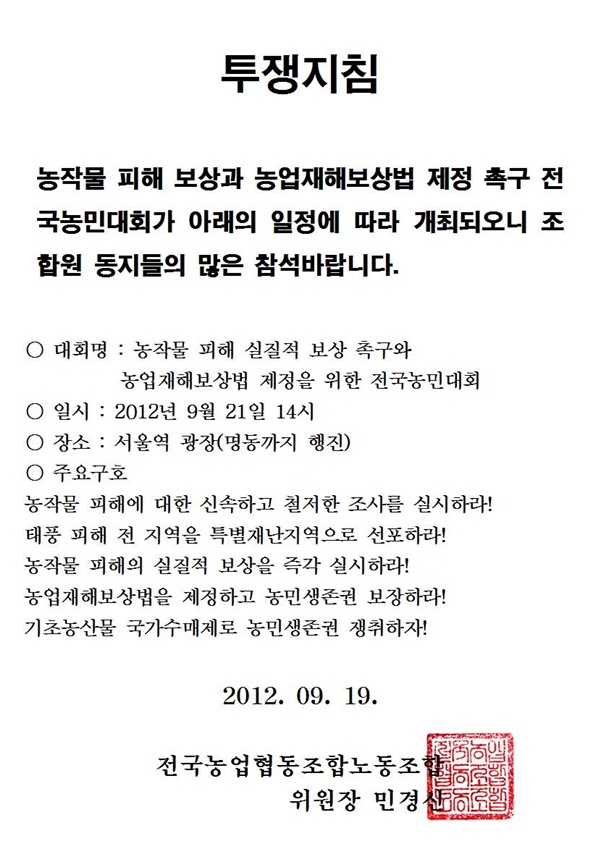9¿ù21ÀÏ Àü±¹³ó¹Î´ëȸ Âü°¡Áöħ