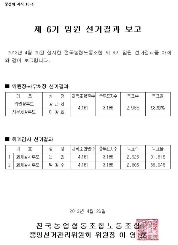 6±â ÀÓ¿ø¼±°Å °á°ú °ø°í