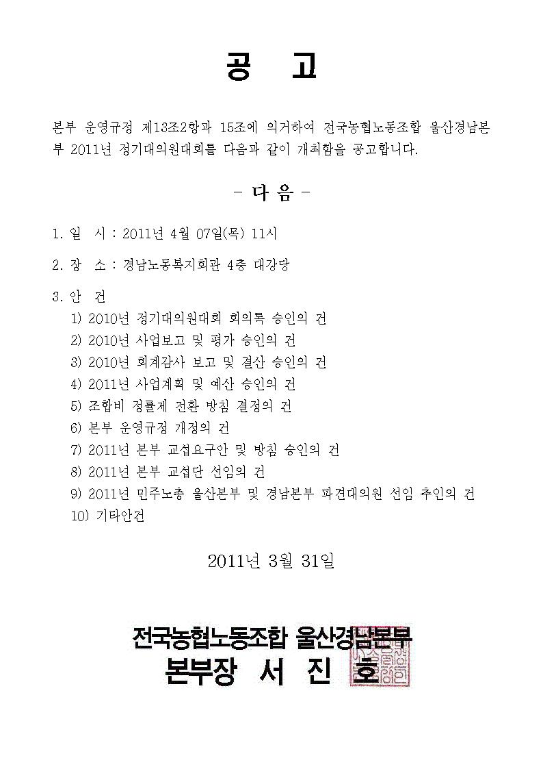 [°øÁö] 2011³â º»ºÎ Á¤±â´ëÀÇ¿ø´ëȸ °ø°í