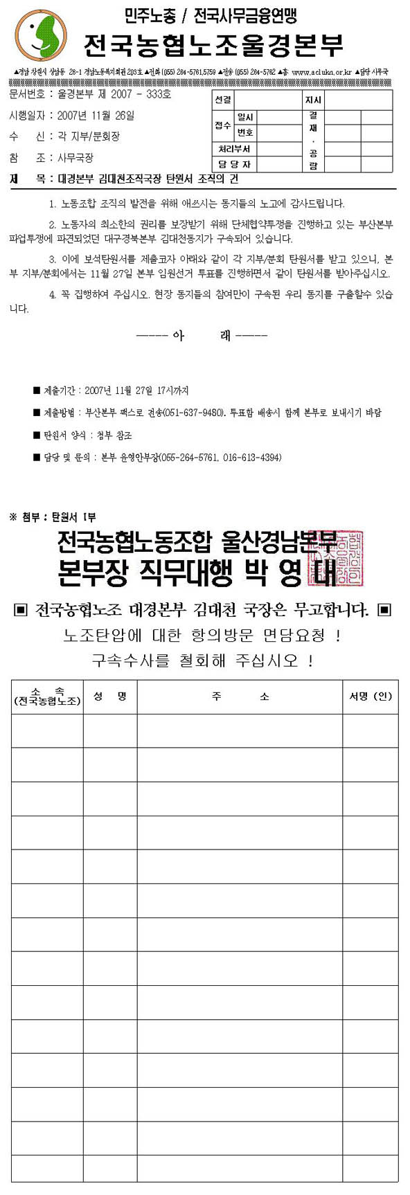 Àü±¹³óÇù³ëÁ¶ ¿ï»ê°æ³²º»ºÎ ȨÆäÀÌÁö´Â Á¤º¸¸¦ ³ª´¯´Ï´Ù. º°µµÀÇ Ç¥½Ã°¡ ¾ø´Â ÇÑ ÀúÀÛ¹°Àº 'Á¤º¸°øÀ¯¶óÀ̼±½º 2.0 : ¿µ¸®±ÝÁö'¸¦ µû¸¨´Ï´Ù.