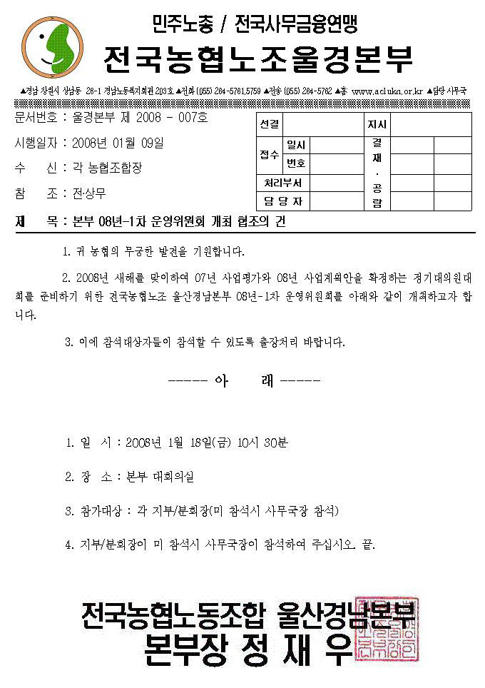 [ÀϹÝ] º»ºÎ 08-1Â÷ ¿î¿µÀ§¿øÈ¸ °³ÃÖ ÇùÁ¶ÀÇ °Ç