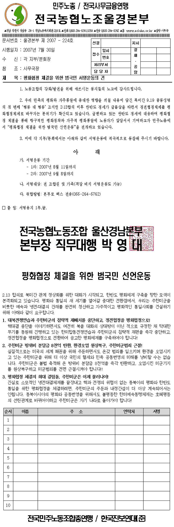 [°ø¹® 07-224] ÆòÈÇùÁ¤ ü°áÀ» À§ÇÑ ¹ü±¹¹Î ¼¸í¿îµ¿