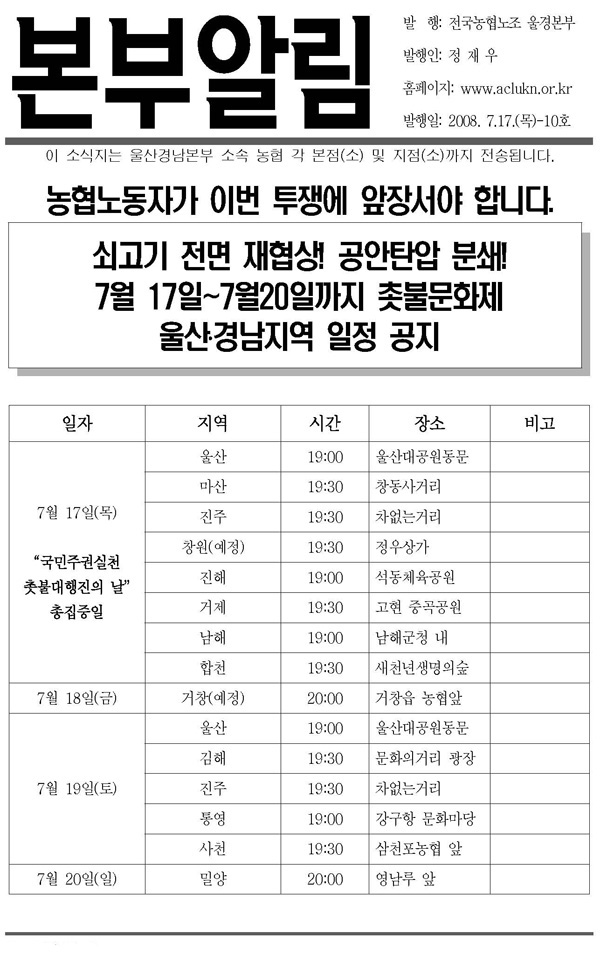 [¾Ë¸² 08-10] 7/17~7/20 ¿ï»ê°æ³²Áö¿ª Ãкҹ®ÈÁ¦ ÀÏÁ¤ °øÁö