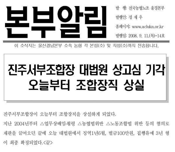 Àü±¹³óÇù³ëÁ¶ ¿ï»ê°æ³²º»ºÎ ȨÆäÀÌÁö´Â Á¤º¸¸¦ ³ª´¯´Ï´Ù. º°µµÀÇ Ç¥½Ã°¡ ¾ø´Â ÇÑ ÀúÀÛ¹°Àº 'Á¤º¸°øÀ¯¶óÀ̼±½º 2.0 : ¿µ¸®±ÝÁö'¸¦ µû¸¨´Ï´Ù.