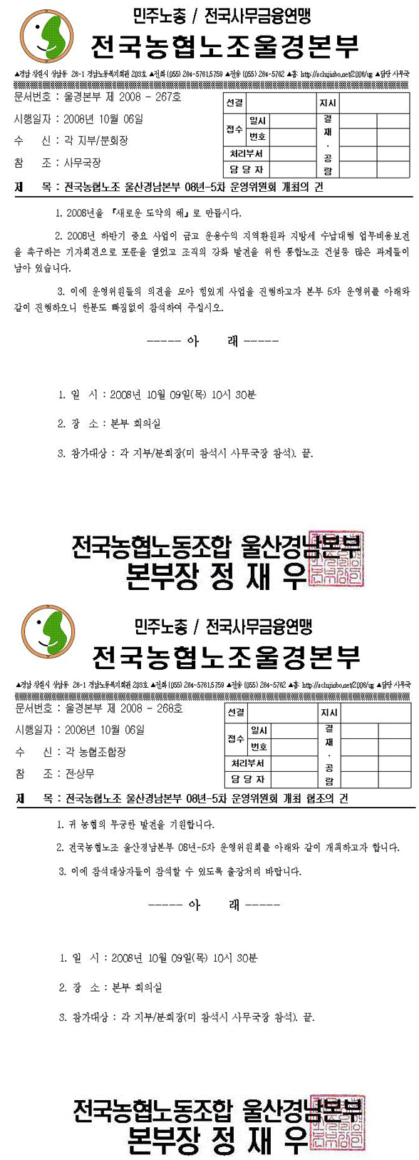 [°ø¹®] º»ºÎ 5Â÷ ¿î¿µÀ§¿øÈ¸ °³ÃÖ ¹× ÇùÁ¶ °ø¹®[267-268]