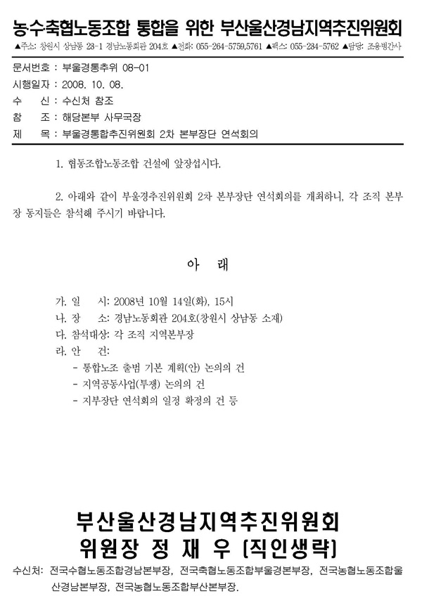 [°ø¹®] ³ó¼öÃàÇù³ëÁ¶ÅëÇÕ ºÎ¿ï°æÅëÃßÀ§¿øÈ¸ º»ºÎÀå´Ü ¿¬¼®È¸ÀÇ °³ÃÖ