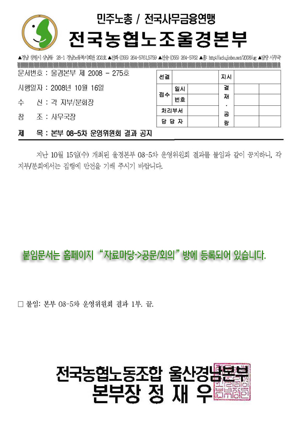 [°ø¹®] º»ºÎ 08-5Â÷ ¿î¿µÀ§¿øÈ¸ °á°ú °øÁöÀÇ °Ç