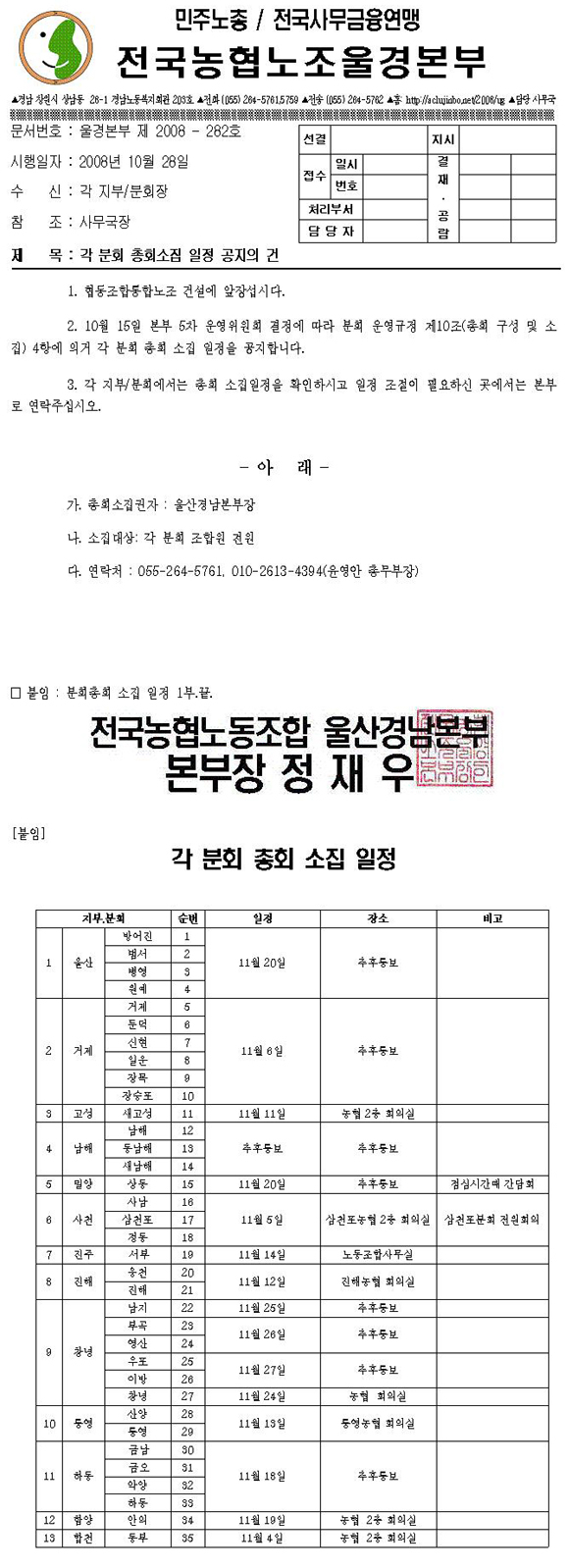 [°ø¹®] [°ø¹®-282]°¢ ºÐȸ ÃÑȸ ¼ÒÁý ÀÏÁ¤ °øÁöÀÇ °Ç
