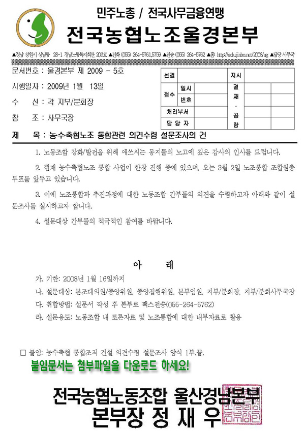 [°ø¹®] [09-5È£]09³â ³ëÁ¶ÅëÇÕ °ü·Ã °£ºÎ¼³¹®Á¶»çÀÇ °Ç
