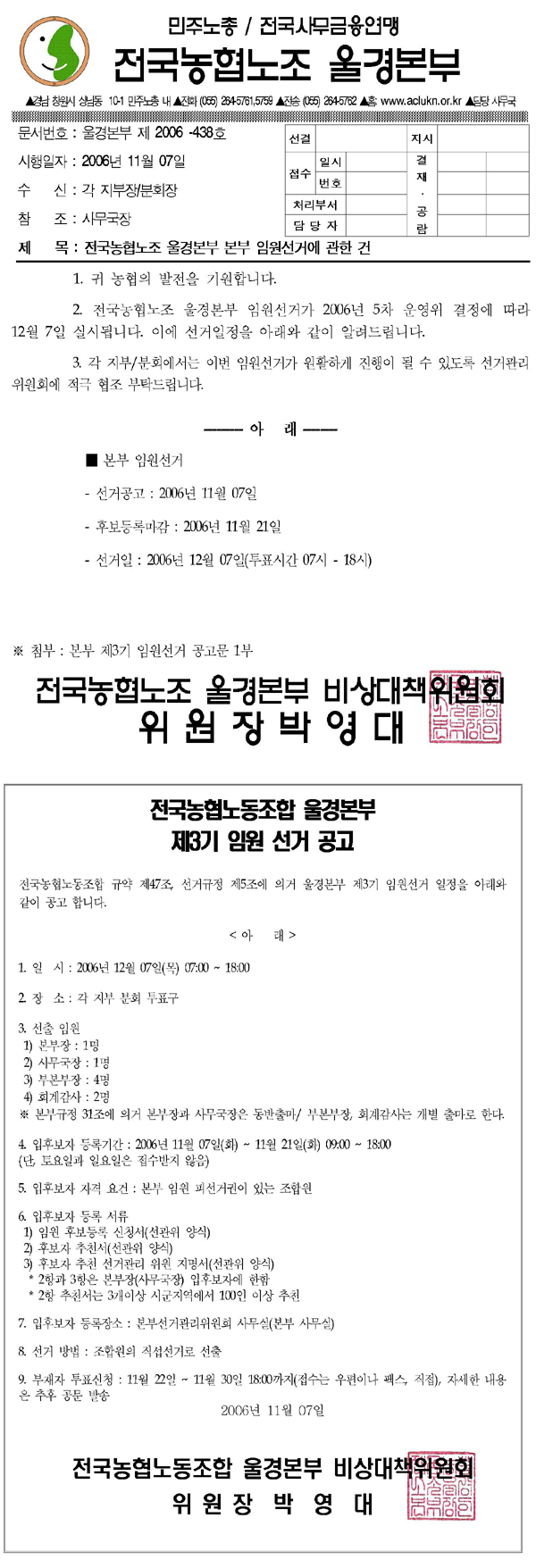 [ÀϹÝ] ¿ï°æº»ºÎ Á¦3±â ÀÓ¿ø¼±°Å °ø°íÀÇ °Ç