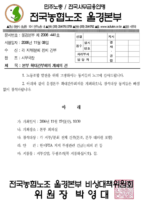 Àü±¹³óÇù³ëÁ¶ ¿ï»ê°æ³²º»ºÎ ȨÆäÀÌÁö´Â Á¤º¸¸¦ ³ª´¯´Ï´Ù. º°µµÀÇ Ç¥½Ã°¡ ¾ø´Â ÇÑ ÀúÀÛ¹°Àº 'Á¤º¸°øÀ¯¶óÀ̼±½º 2.0 : ¿µ¸®±ÝÁö'¸¦ µû¸¨´Ï´Ù.