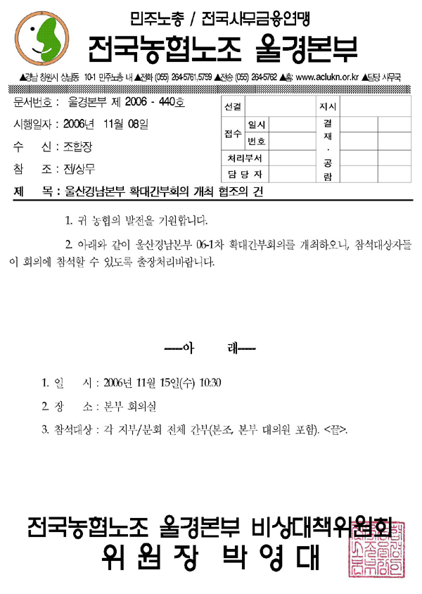 Àü±¹³óÇù³ëÁ¶ ¿ï»ê°æ³²º»ºÎ ȨÆäÀÌÁö´Â Á¤º¸¸¦ ³ª´¯´Ï´Ù. º°µµÀÇ Ç¥½Ã°¡ ¾ø´Â ÇÑ ÀúÀÛ¹°Àº 'Á¤º¸°øÀ¯¶óÀ̼±½º 2.0 : ¿µ¸®±ÝÁö'¸¦ µû¸¨´Ï´Ù.
