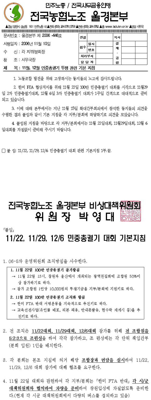 [ÀϹÝ] [°ø¹®-446È£] 11¿ù, 12¿ù ¹ÎÁßÃѱȱ⠴ëȸ ±âº» ÁöħÀÇ °Ç