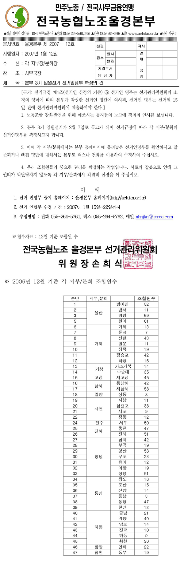 °¢ ÁöºÎ/ºÐȸ¿¡¼´Â ¼±°ÅÀθíºÎ¸¦ È®ÀÎÇÏ½Ã°í ¿À·ù³ª ºüÁøºÎºÐÀÌ ÀÖÀ¸¸é º»ºÎ·Î ¿¬¶ôÇÏ¿© ¼öÁ¤ÇÏ¿© ÁֽʽÿÀ.