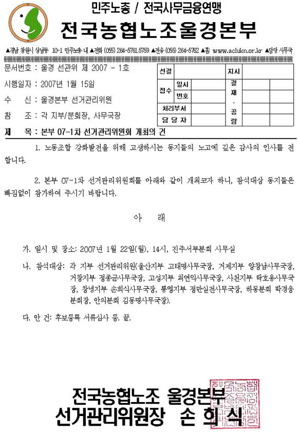 [¼±°üÀ§ °ø¹®] º»ºÎ 07-1Â÷ ¼±°Å°ü¸®À§¿øÈ¸ °³ÃÖÀÇ °Ç