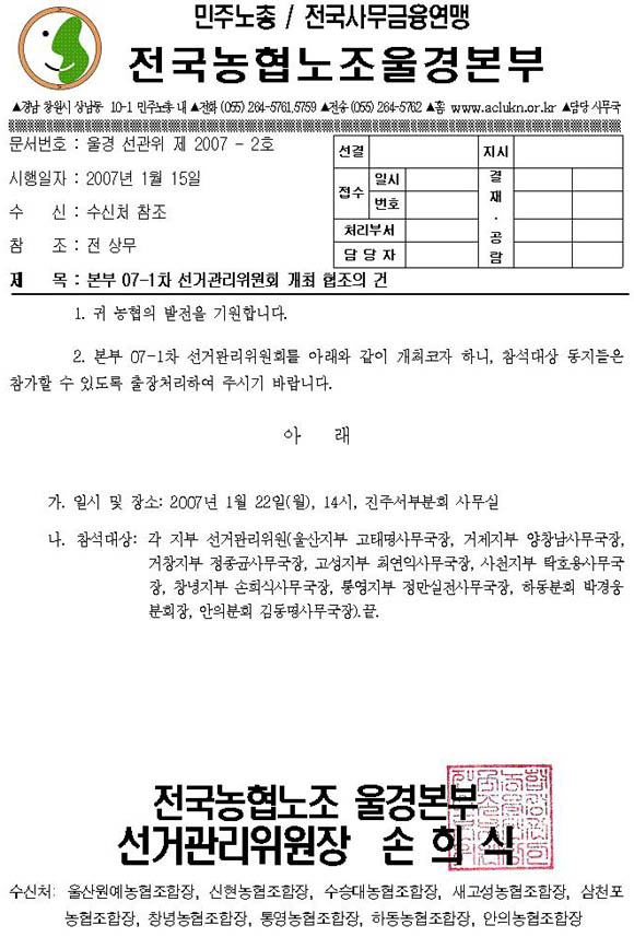 [ÀϹÝ] [¼±°üÀ§ °ø¹®] º»ºÎ 07-1Â÷ ¼±°Å°ü¸®À§¿øÈ¸ °³ÃÖ ÇùÁ¶ÀÇ °Ç