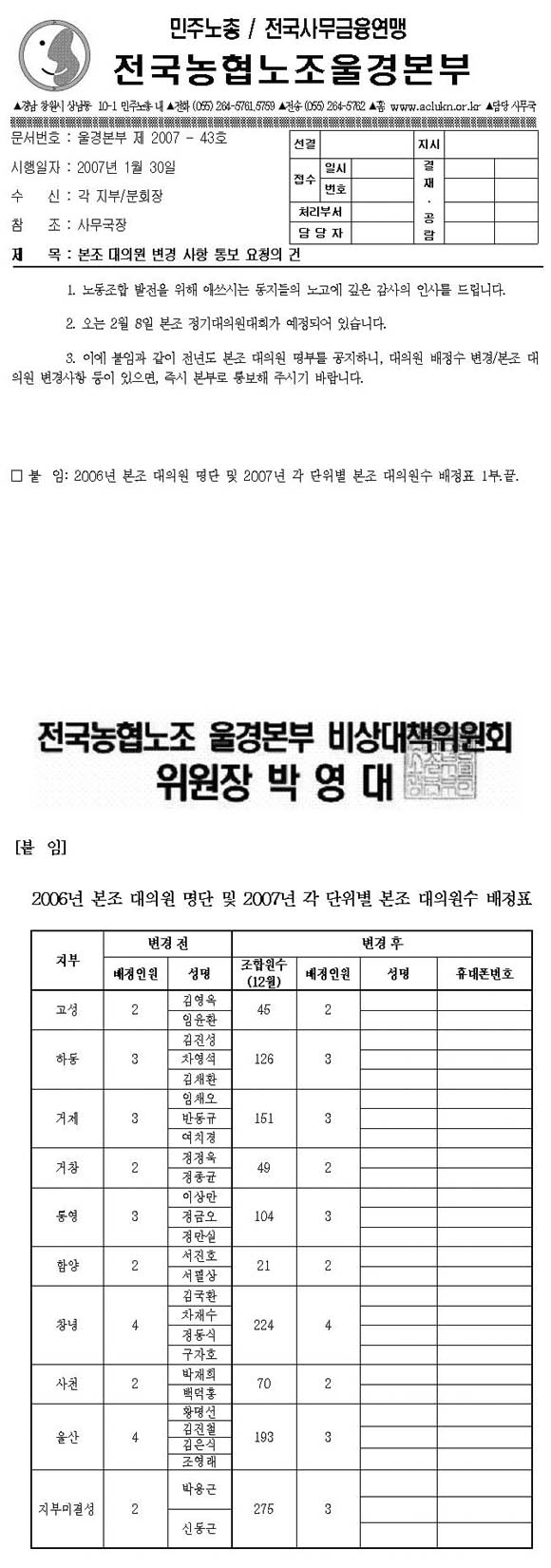[°ø¹® 07-43] º»Á¶ ´ëÀÇ¿ø º¯°æ »çÇ× Å뺸 ¿äûÀÇ °Ç