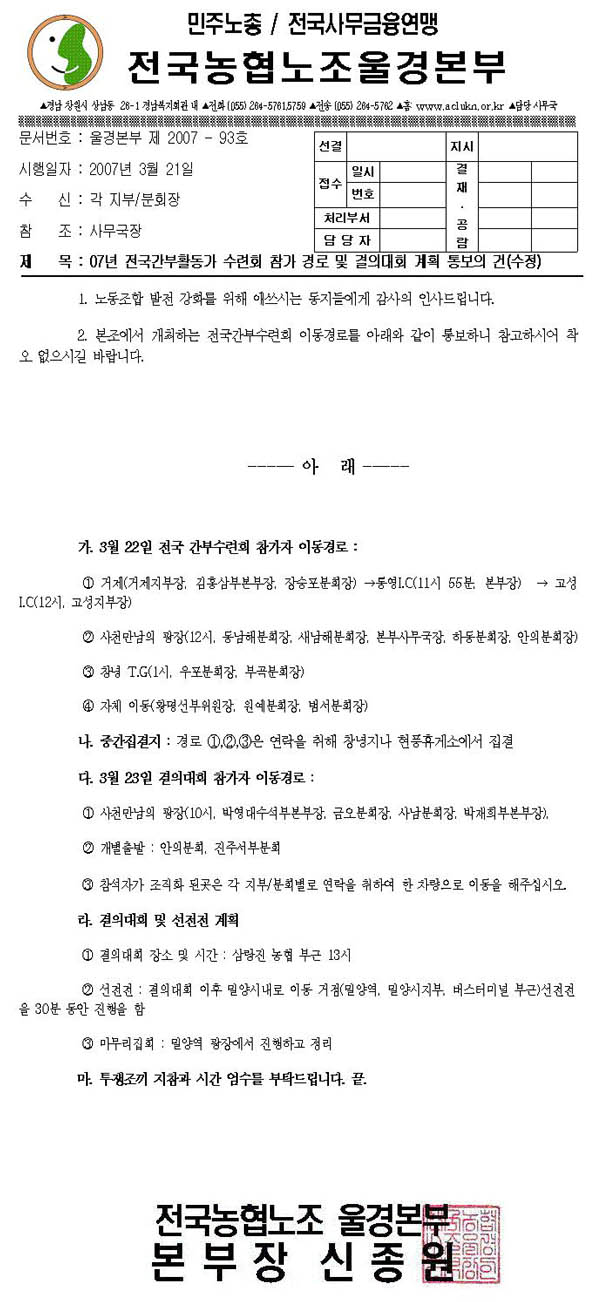 [ÀϹÝ] º»Á¶ °£ºÎ¼ö·Ãȸ À̵¿°æ·Î ¹× °áÀÇ´ëȸ À̵¿°æ·Î Å뺸