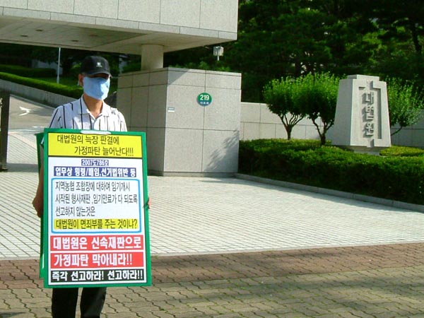 Á¦¸ñ ¾øÀ½ '´ë¹ý¿ø¼±°í¸¦ Ã˱¸Çϸç 1ÀνÃÀ§ µ¹ÀÔ' ÁøÁÖ¼ºÎºÐȸ°¡ Á¶ÇÕÀå¿¡ ´ëÇÑ ´ë¹ý¿øÀÇ ´ÁÀåÆÇ°áÀ» ±ÔźÇÏ¸ç ½Å¼ÓÇÑ ÆÇ°áÀ» Ã˱¸ÇÏ´Â 1ÀνÃÀ§¸¦ Áö³ 23ÀϺÎÅÍ °è¼Ó ÁøÇàÇϰí ÀÖ½À´Ï´Ù.