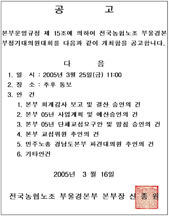 º»ºÎ Á¤±â´ëÀÇ¿ø´ëȸ °ø°í